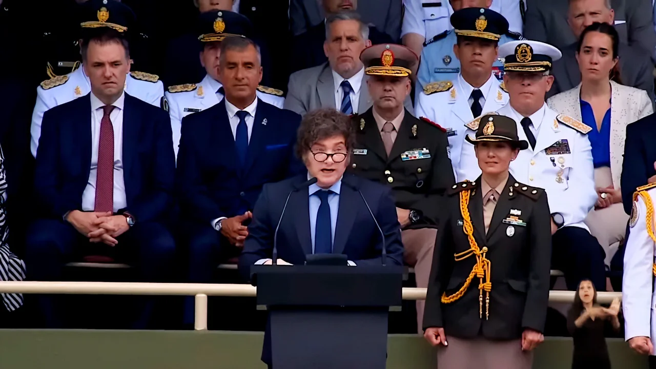Al término, Milei permaneció en su lugar junto a Villarruel y siguió con atención el desfile de efectivos de seguridad.