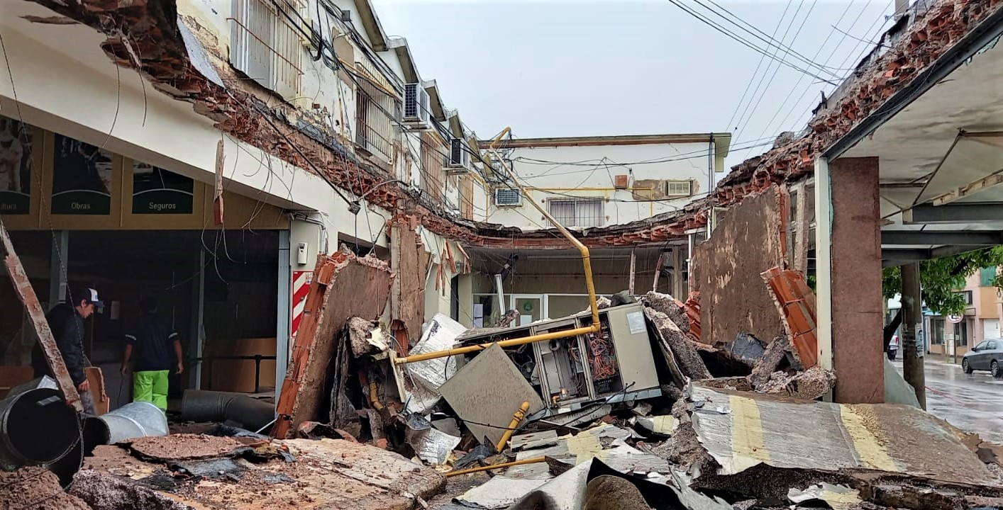 Personal de distintos sectores de la Cooperativa estuvieron trabajando desde muy temprano para desmantelar partes de la estructura colindante al lugar de la caída, que podría generar mayores inconvenientes y situaciones de peligro. También rápidamente se empezaron a reubicar computadoras y muebles de las oficinas que prestan servicio en esta dirección y trasladarlas al espacio de la Usina, sobre calle 1º de Mayo, incluido el sector de Créditos y Cobranzas.