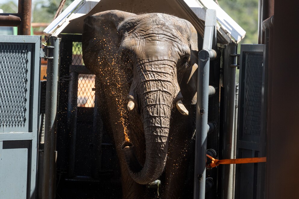 Pupy, la última elefanta que se estaba en el Ecoparque porteño, llegó hoy en buen estado de salud al Santuario de Elefantes en el estado brasileño de Mato Grosso.