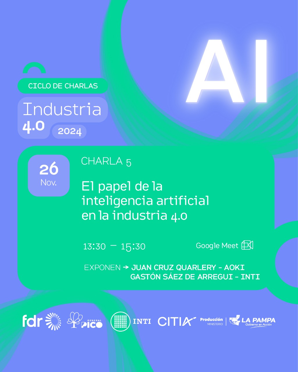 La Agencia CITIA y el Instituto Nacional de Tecnología Industrial (INTI), en el marco del ciclo de charlas sobre Industria 4.0, invitó a una nueva charla titulada “La inteligencia artificial en la industria: el futuro que se integra hoy” esta actividad, es acompañada por la Municipalidad de General Pico y la Fundación para el Desarrollo Regional.
