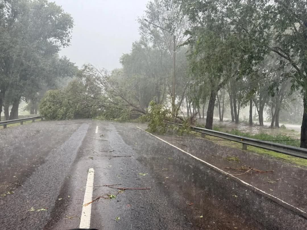 A las 17 horas la tormenta golpeó a General Acha. La Ruta 152 estuvo cortada frente al Destacamento de Gendarmería por la caída de árboles tras las fuertes ráfagas de viento.