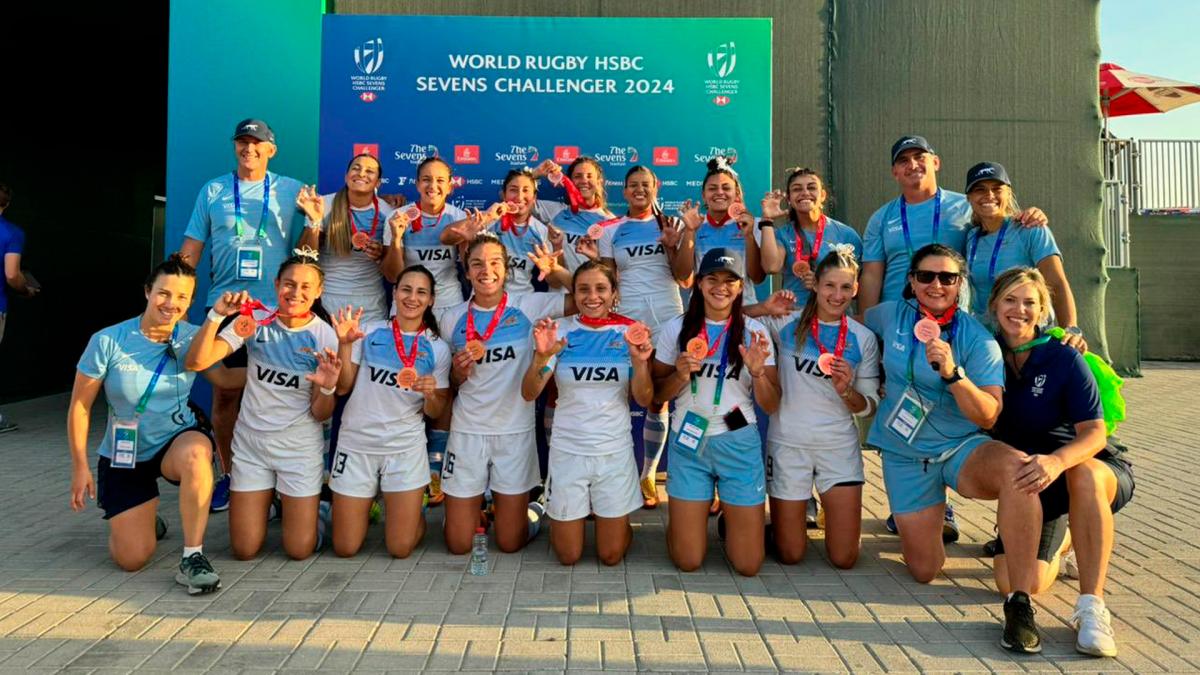 Tras derrotar a Uganda en el partido por el tercer puesto en Dubai, la selección femenina de rugby seven logró su primera medalla en la historia y se subió al podio detrás del campeón China (ganó la final 19-5) y del subcampeón Kenia.