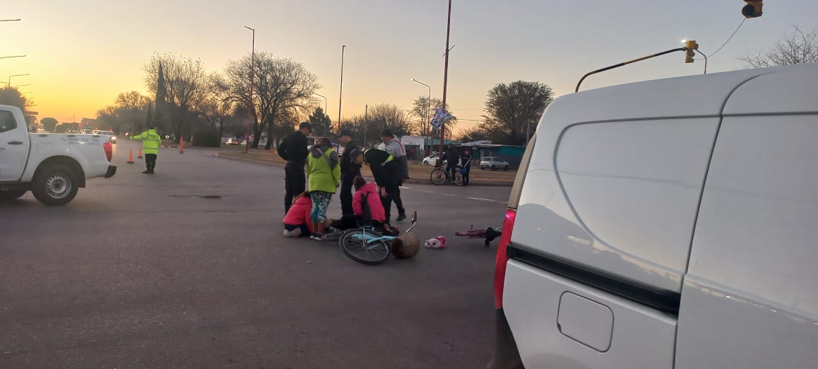 En una bicicleta iba una mujer y en la otra su hija menor de edad, ambas fueron impactadas por el utilitario y las ciclistas cayeron al asfalto lesionadas.