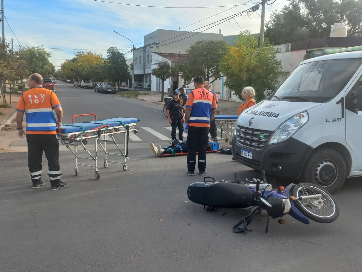 En la moto circulaban dos hombres y por el fuerte impacto las dos personas que iban en la moto.quedaron lesionados en el piso hasta el arribo de dos ambulancias que derivaron a los hombres al Hospital Evita.