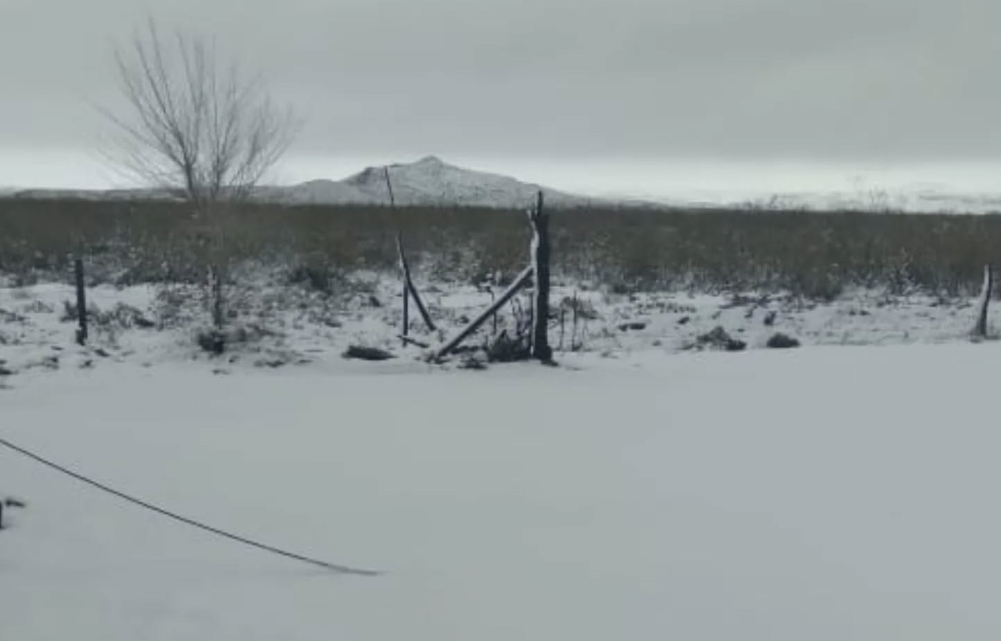 La nieve cubrió de blanco el paisaje, incluyendo el Cerro Negro, que se ve al fondo en la imagen.