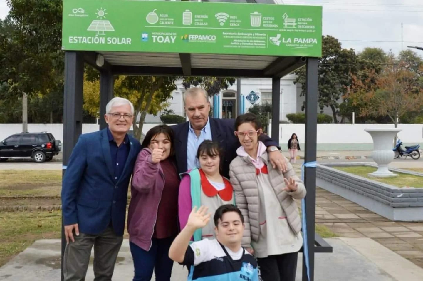 En la mañana del miércoles se inauguró la “Estación Solar” de uso comunitario, que está ubicada frente a la Escuela N5, en un área recreativa que provee servicio de agua caliente mediante un termotanque abastecido por energía solar, y puntos de conexión de energía eléctrica para recarga de dispositivos electrónicos (celulares, tablets) y servicio de Wifi.