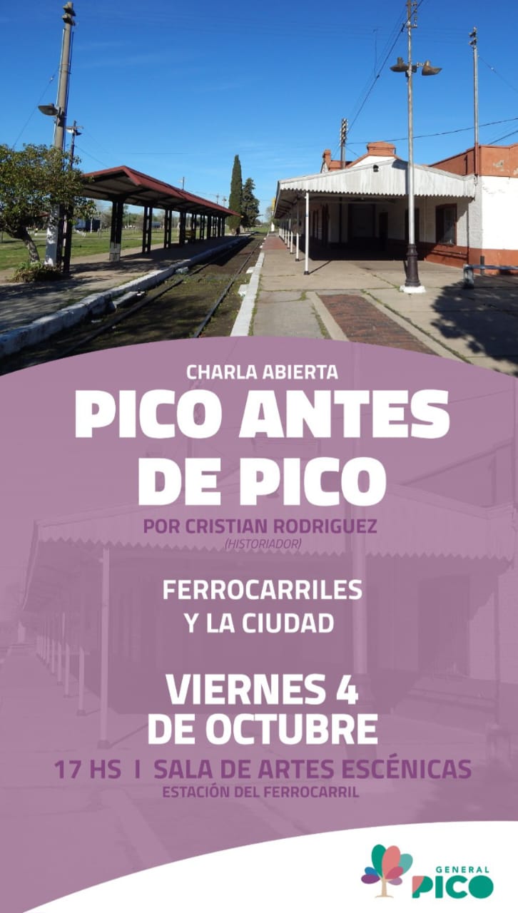 En el marco de las celebraciones del día del Adulto Mayor, que se realizarán en General Pico el próximo viernes 4 de octubre, en la Sala de Artes escénicas de la ex estacón de ferrocarriles, el historiador local Cristián D. Rodríguez estará ofreciendo un charla abierta.