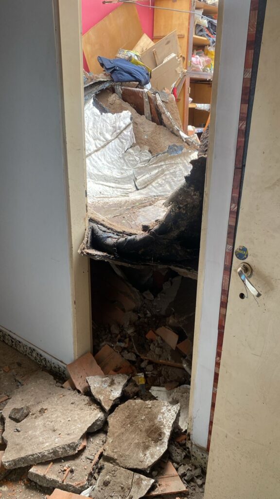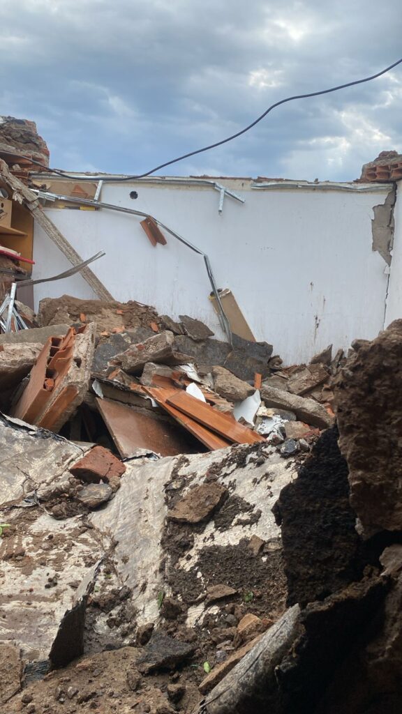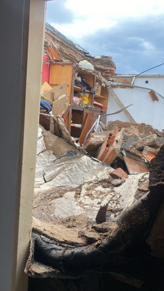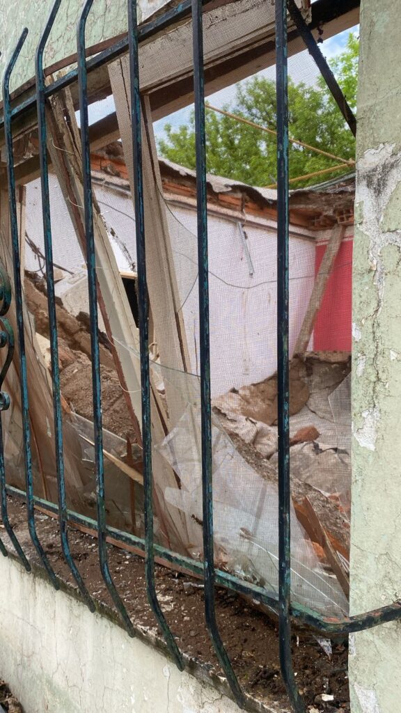 Una vecina del barrio Villa Parque, sufrió la pérdida total de su vivienda. «Escucho un ruido, salimos al patio y la pared vemos que está cediendo, vamos a la pieza y sentimos más ruido así que salimos, y se derrumbó todo. Semejante estruendo.» Se derrumbó una casa en calle Quemú Quemú 2151 entre Hucal y Eduardo Castex, Santa Rosa, La Pampa.