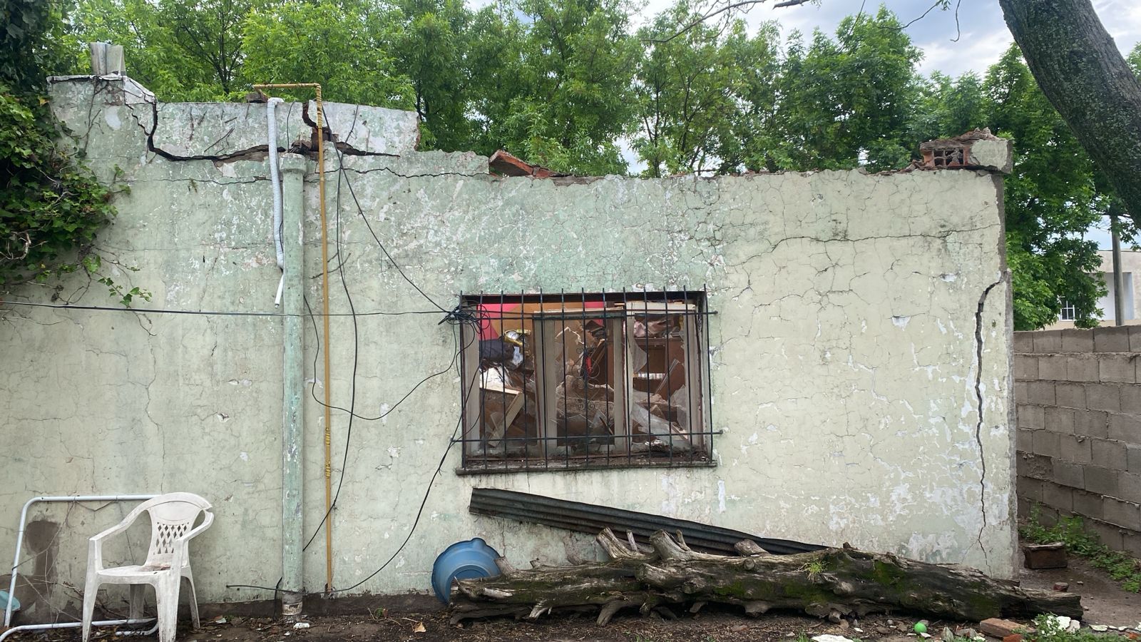 Una vecina del barrio Villa Parque, sufrió la pérdida total de su vivienda. «Escucho un ruido, salimos al patio y la pared vemos que está cediendo, vamos a la pieza y sentimos más ruido así que salimos, y se derrumbó todo. Semejante estruendo.» Se derrumbó una casa en calle Quemú Quemú 2151 entre Hucal y Eduardo Castex, Santa Rosa, La Pampa.