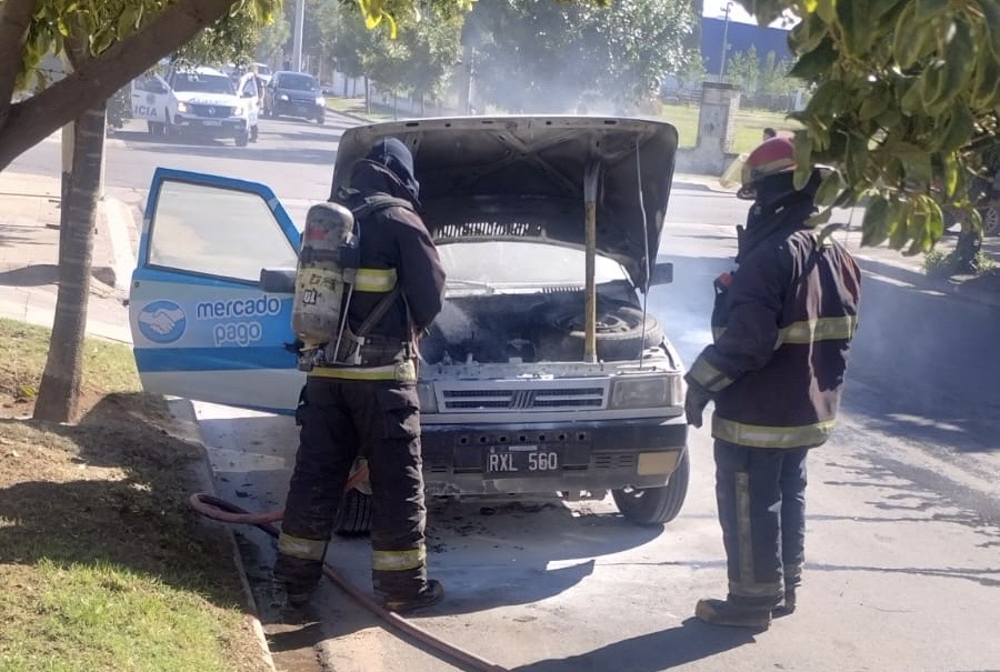 El incendio se inició en el motor del auto, que pertenece a la empresa Mercado pago.