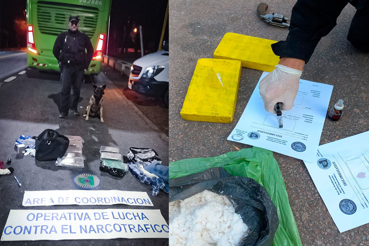Sucedió el sábado pasado, poco antes de la medianoche, cuando un colectivo de la empresa Chevallier, que había salido de Retiro con destino a la provincia de Neuquén, fue detenido en el puesto de control. Un perro detectó drogas en uno de los asientos del colectivo, donde se encontraron dos bultos en forma de ladrillo. Posterior análisis determinó que se trataba de cocaína, con un peso total de poco más de 2 kilos.