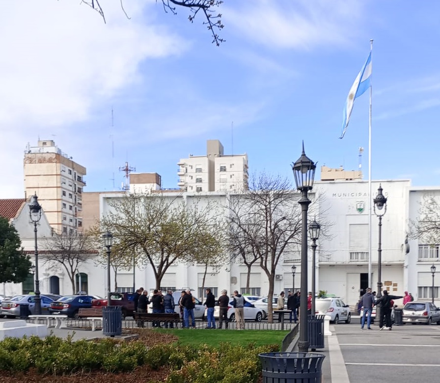 Unos 25 taxistas se movilizaron hasta la Municipalidad de Santa Rosa, para pedir hablar con el intendente di Napoli. No los atendió.