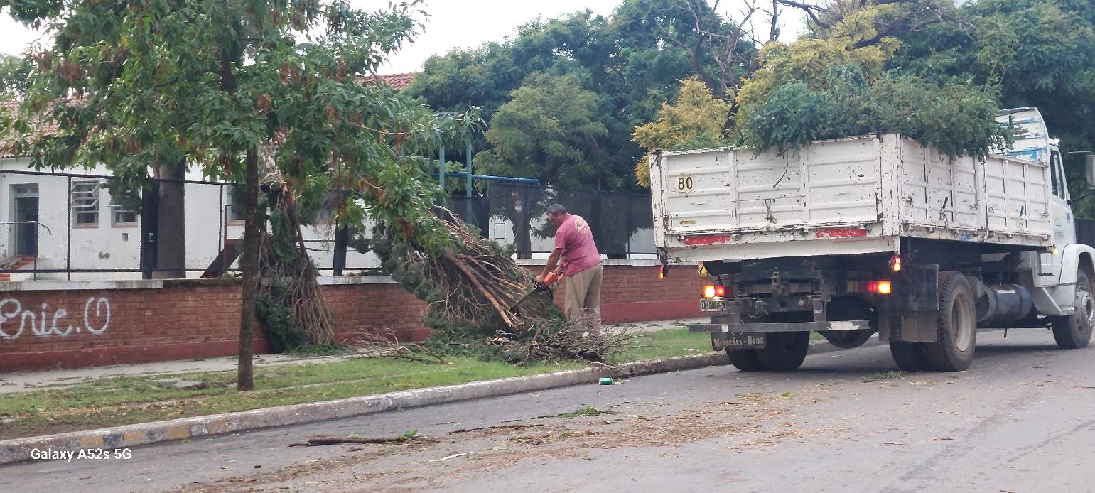 La fuerza del viento tiró árboles que cayeron sobre autos estacionados, y varias casas se inundaron, incluyendo el hogar de adultos mayores Marcelina Baigorrita.