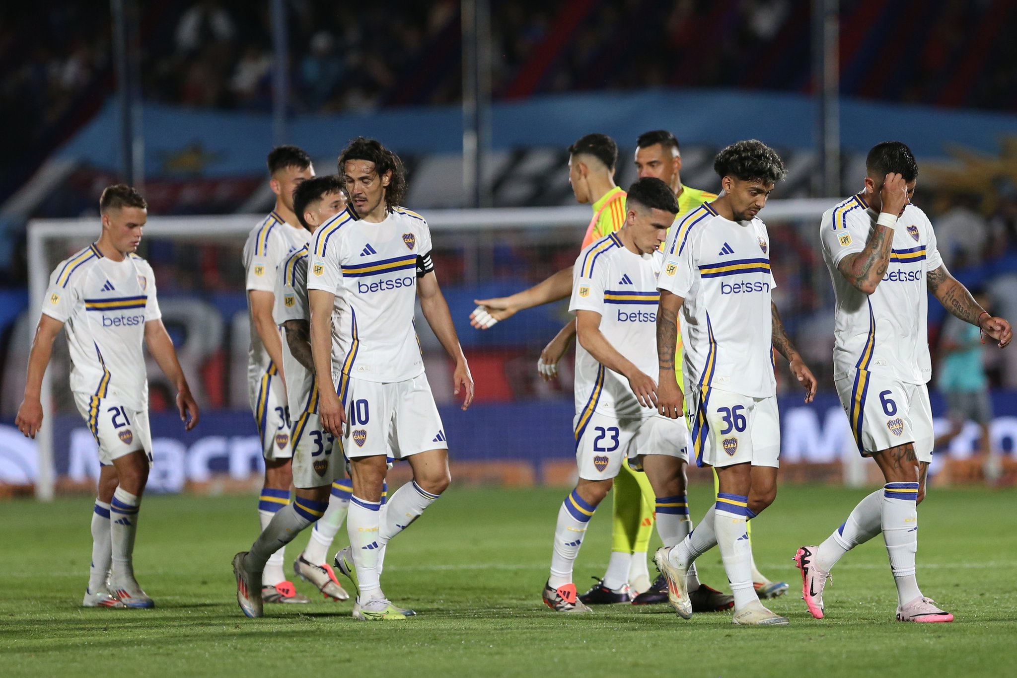 Formación de Boca Juniors: Sergio Romero; Luis Advíncula; Aaron Anselmino; Marcos Rojo; Lautaro Blanco; Cristian Medina; Ignacio Miramón; Kevin Zenón; Brian Aguirre; Edinson Cavani; Miguel Merentiel. DT: Fernando Gago.