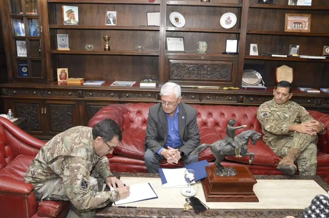 El Sr. Intendente, Rodolfo Alvarez firmó esta mañana un nuevo convenio para la ciudad de Toay, junto al Coronel Mayor Roberto Horacio Etchebest Comandante de la 10ma Brigada Mecanizada.