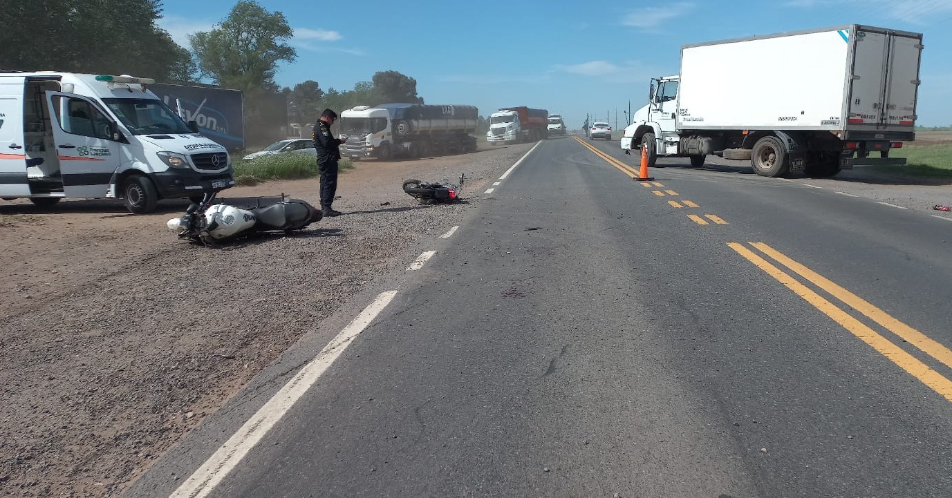 Hubo una colisión entre dos motos en el km. 443 de la Ruta Nacional Nº5: Hay dos internados con fracturas, uno de ellos en grave estado.