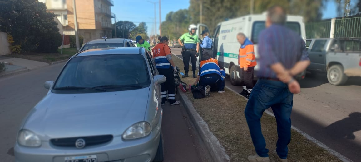 Un nuevo siniestro vial ocurrió esta tarde a las 16:30 horas en Avenida Palacios casi Circunvalación. Triple choque, dos automóviles y una motocicleta conresultó con una mujer lesionada.