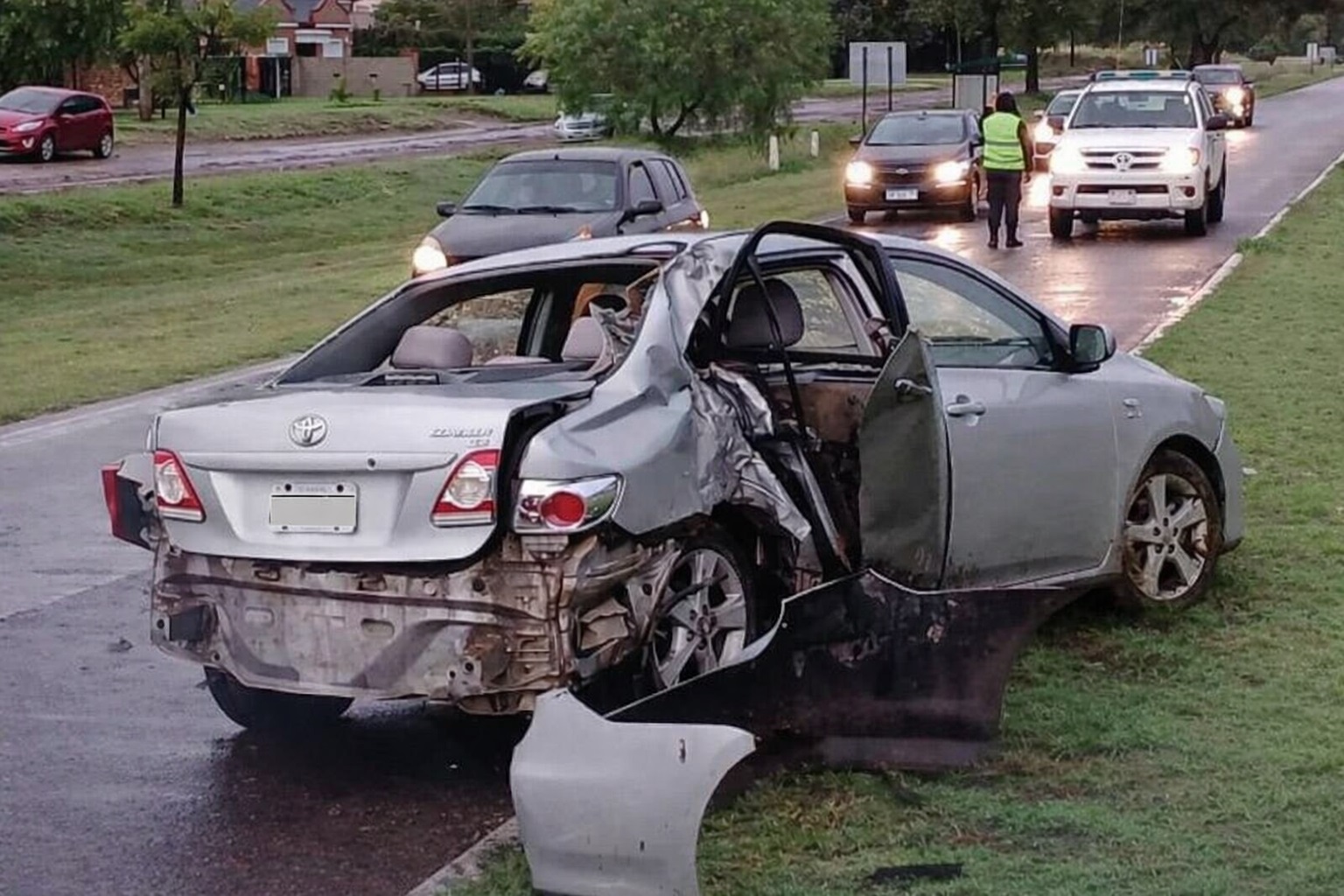 Tras el impacto, el auto quedó sobre el carril contrario y la Policía debió cortar el tránsito de manera preventiva en la zona.
