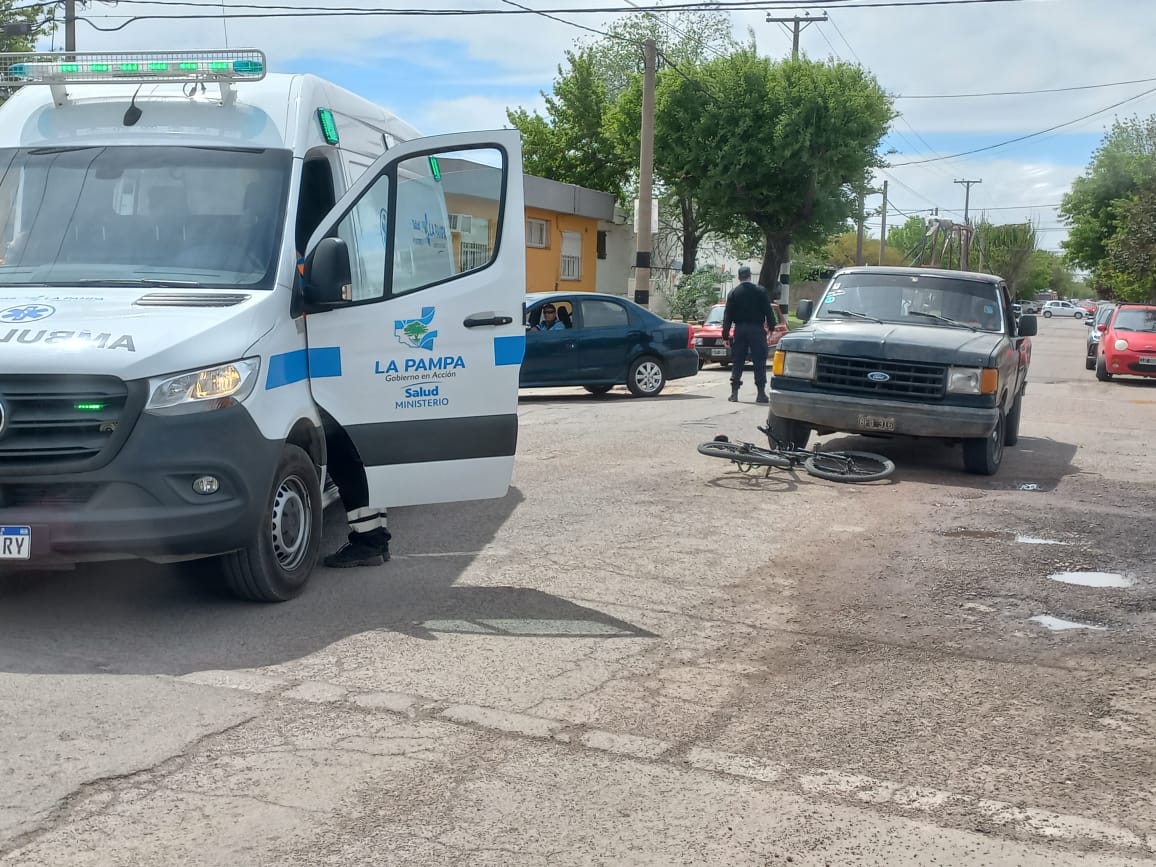 La bicicleta era conducida por un hombre y en la Ford circulaba una pareja. El ciclista por el impacto cayó al piso con golpes y fue trasladado al Hospital Evita.