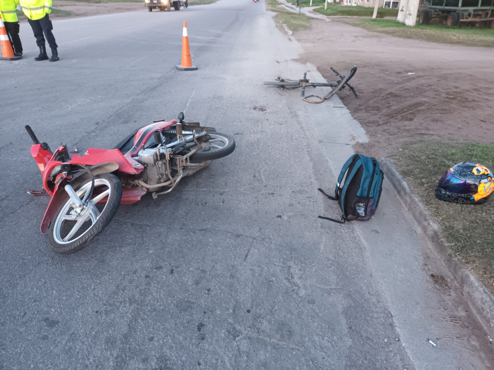 Este jueves 29.05.2025 a las 07:22 p.m. un nuevo siniestro de tránsito con lesionados en calle Tita Merello y Avenida Circunvalación Santiago Marzo. El siniestro vial involucró a dos rodados, una motocicleta y una bicicleta.