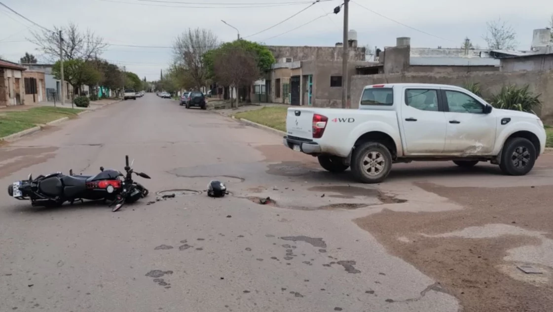 El siniestro de tránsito ocurrió esta mañana a las 8:20 horas cuando un motociclista transitaba por José Ingenieros y al llegar a la intersección con Emilio Civit se encontró con una camioneta que circulaba por EmilioCivit.