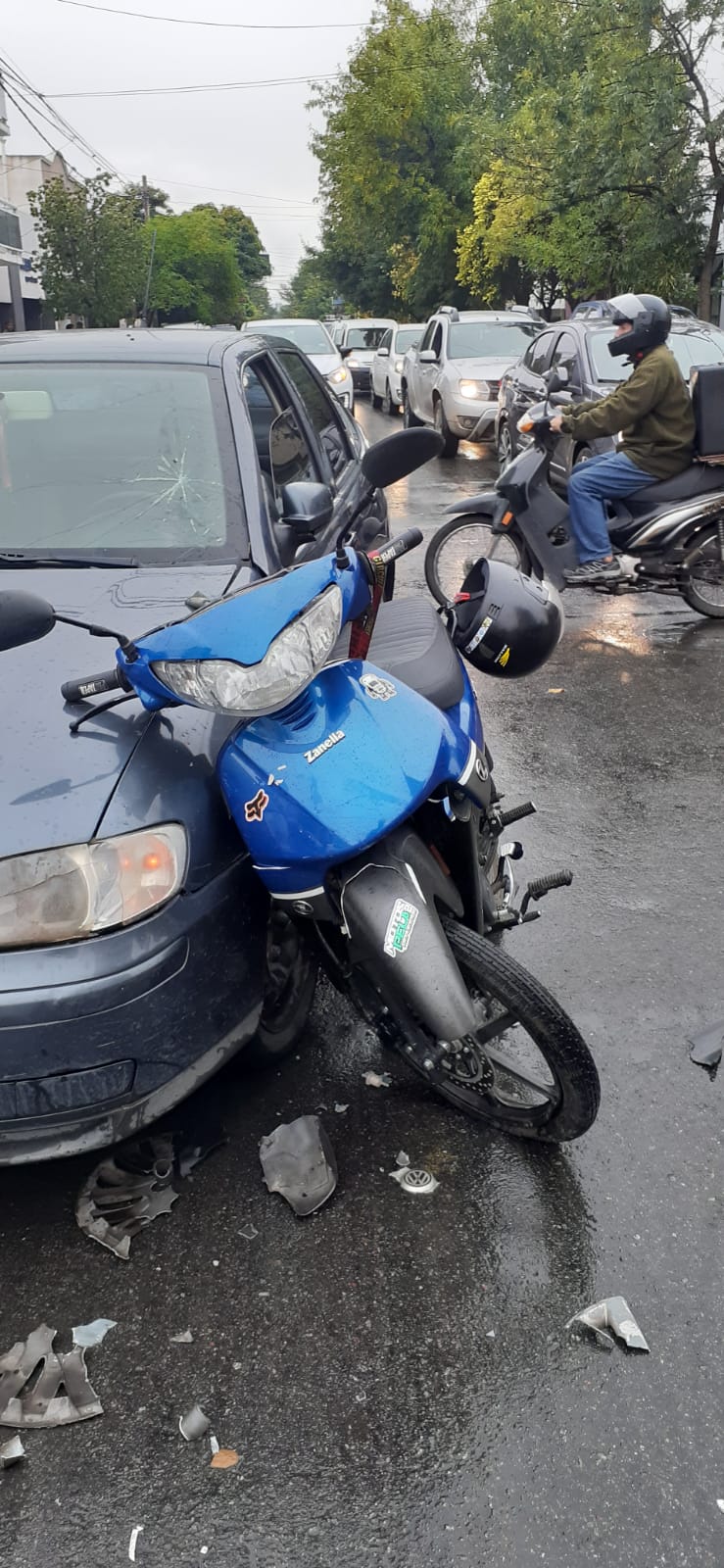 Por San Martin circulaba una moto Zanella 110 cc y por Oliver un Vw Gol, en esa esquina ocurrió un fuerte impacto de la moto en la puerta, paragolpe izquierdo del auto y al parabrisas.