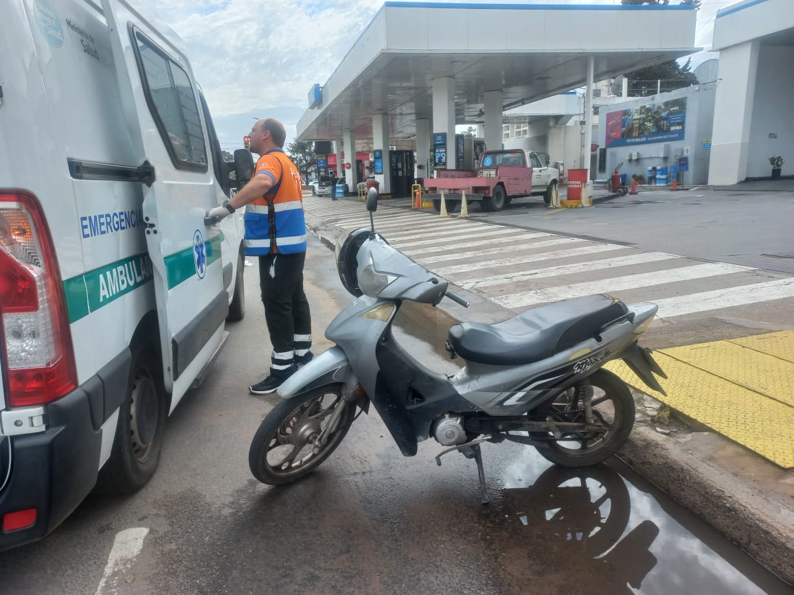 Hoy miércoles 20 a las 12:20 horas circulaba un camión Ford 350 color blanco por Av. Luro de sur a norte y al ingresar a la estación de servicio YPF de Luro y Entre Ríos, fue impactado en la parte trasera por un motociclista que por el impacto quedo con heridas y se lo trasladó al Hospital Favaloro.