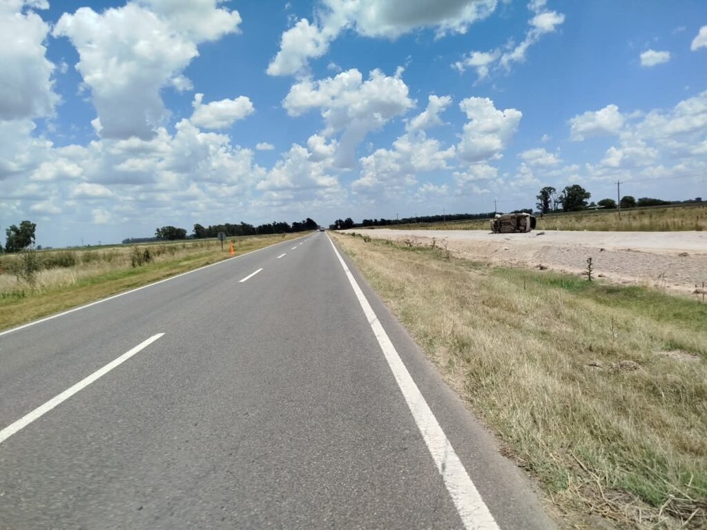 El siniestro ocurrió a la altura del kilómetro 116,300 de la Ruta Nacional N° 5 , cuando se produjo el despiste y posterior vuelco de un automóvil Toyota Corolla, color champagne, que circulaba en sentido Mercedes-Suipacha, conducido por Alberto Gustavo Jaimes , argentino, de 59 años , quien viajaba acompañado por su pareja Eliana Ruth Villar Bahamon, de 36 años de nacionalidad colombiana y dos hijos de 13 y 14 años.