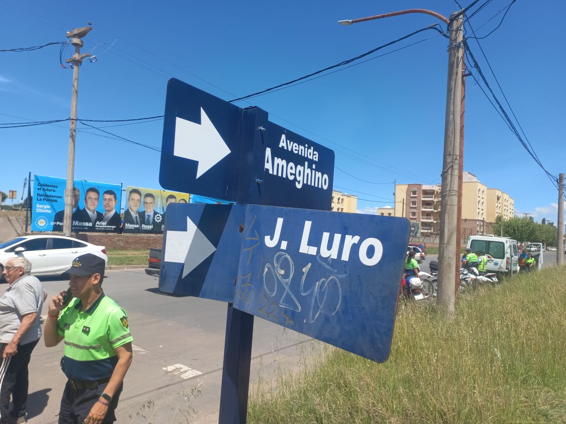 Hoy viernes 27 ocurrió un grave siniestro de tránsito en Ameghino y José Luro, a las 13 horas.