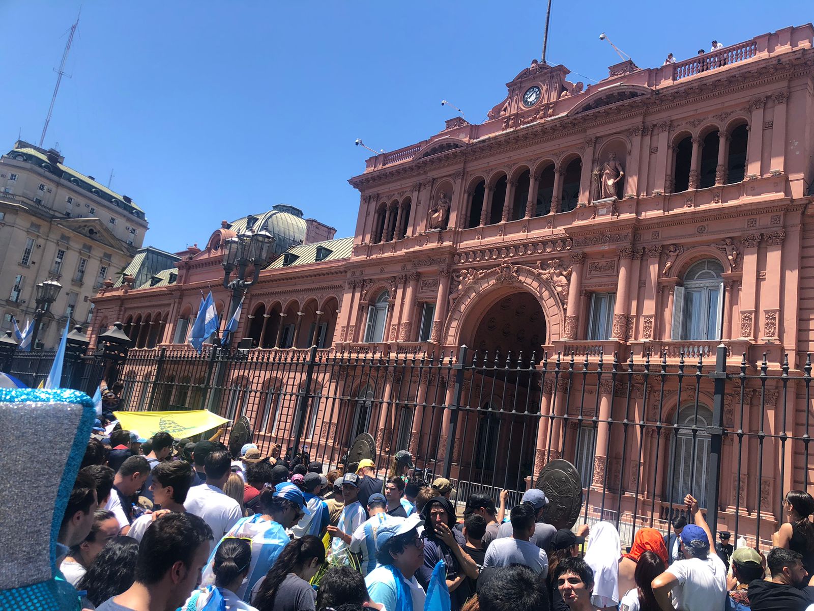 En una jornada calurosa en la Ciudad de Buenos Aires, la gente se acercó hacia el centro porteño para acompañar al nuevo presidente argentino en el día de su asunción.