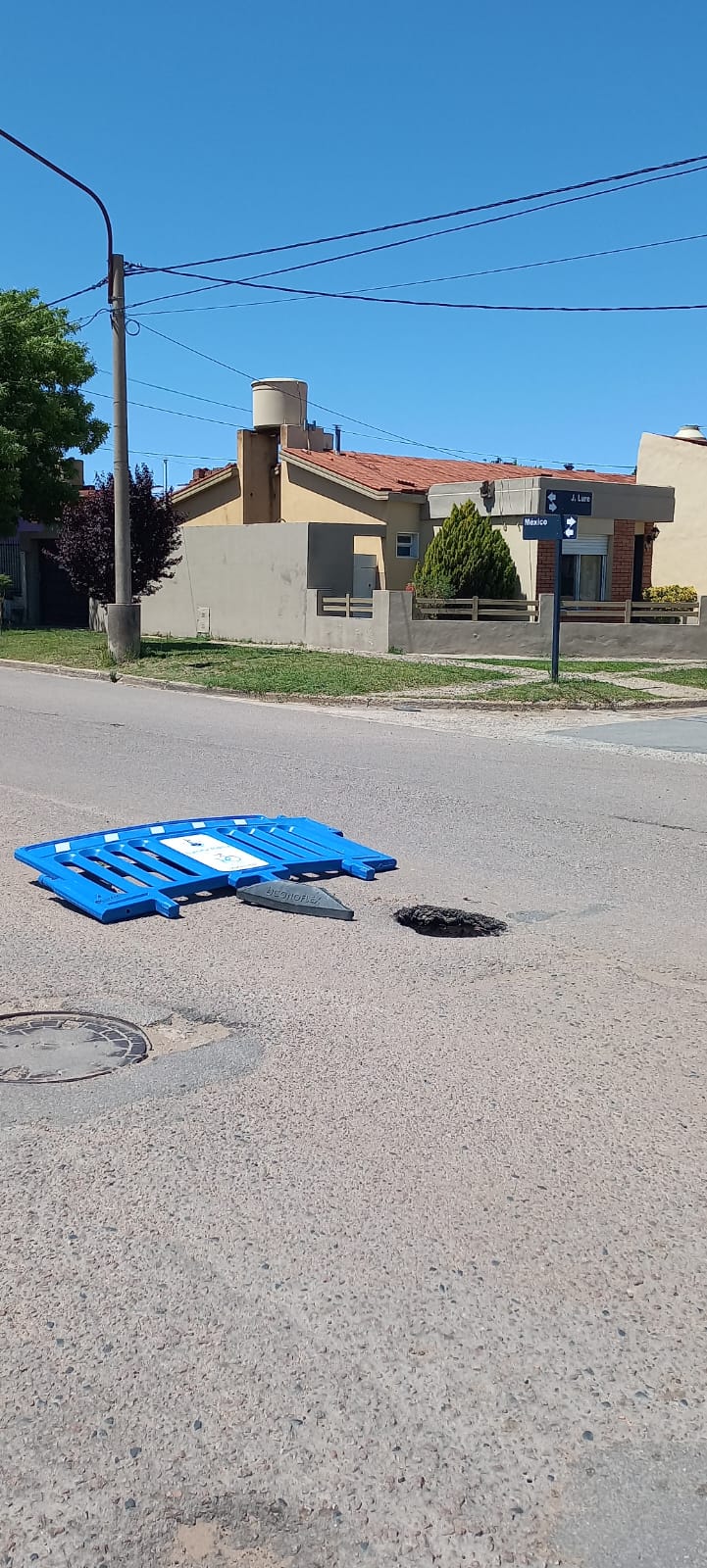 «Esa valla actualmente esta destrozada en el piso y el pozo sin arreglar luego de dos meses, por la contabilidad que llevamos los vecinos desde el mes de agosto que llamamos al teléfono de reclamos de la municipalidad el 147 entre varios vecinos mas de 70 veces sin ningún tipo de solución.»
