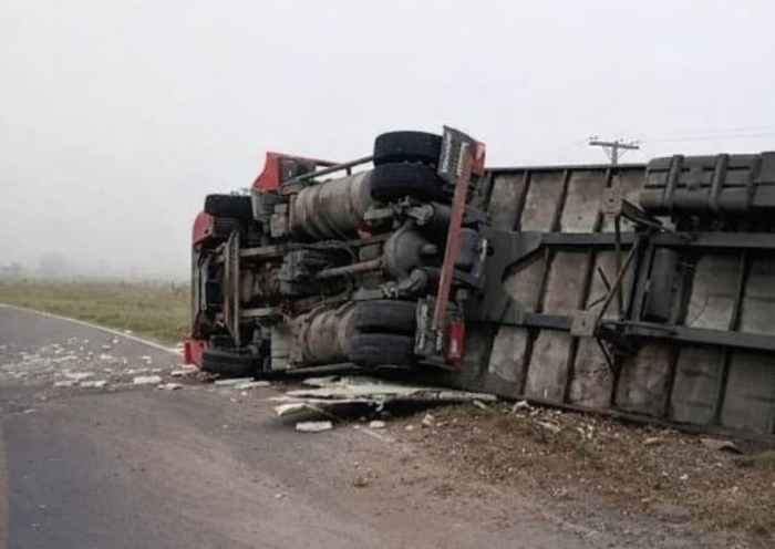 Está tarde en la Ruta 188 volcó una camión con carga de bolsas de papas. Ocurrió a la altura del Río V, entre Banderaló y Bernardo Larroudé.