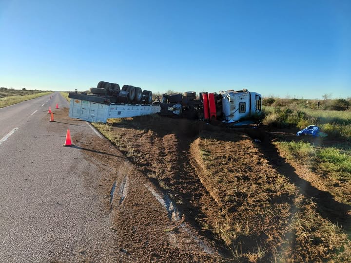 Un camión con semirremolque volcó este miércoles por la mañana sobre la ruta nacional 143, a la altura del kilómetro 47, en cercanías de Chacharramendi.