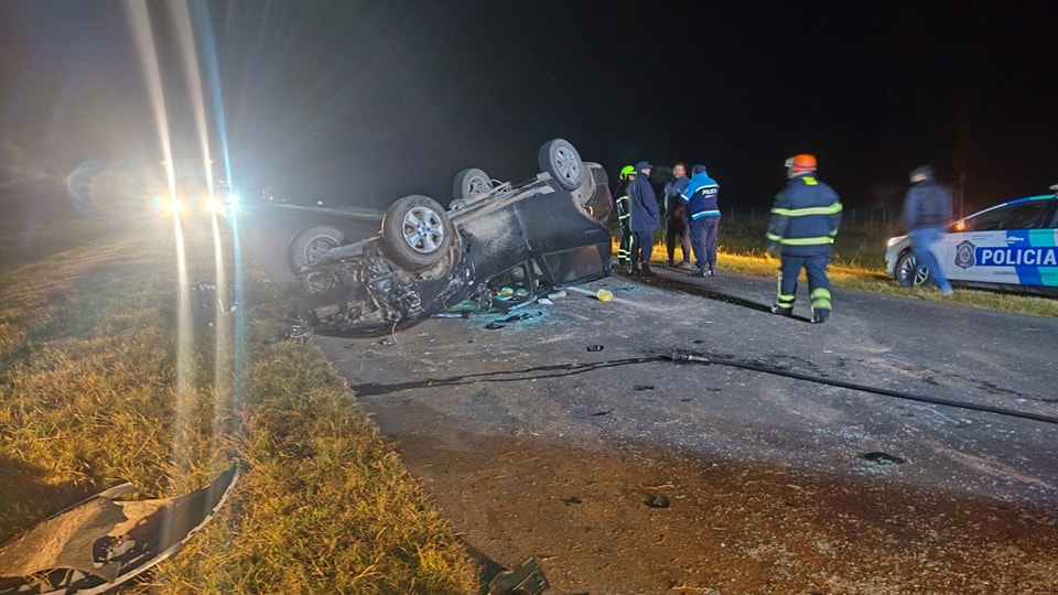 Al llegar al lugar los bomberos encontraron un camión sobre la banquina y la Renault Oroch que luego de chocar en la parte trasera del camión, volcó sobre su techo sobre la cinta asfáltica.