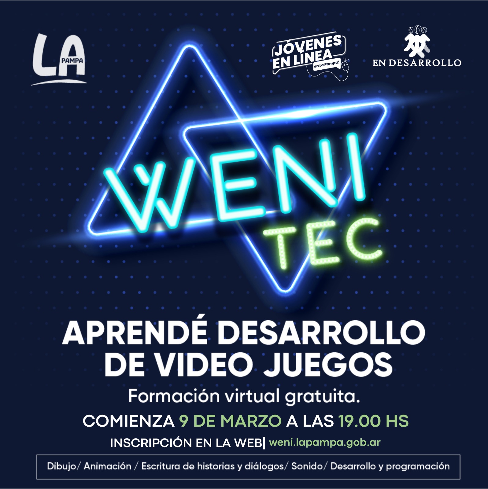 Está abierta la inscripción para la capacitación WENITEC, en desarrollo de videojuegos. El curso inicia por segunda vez, dada la gran aceptación que tuvo en la primera oportunidad, llevada a cabo el año pasado.